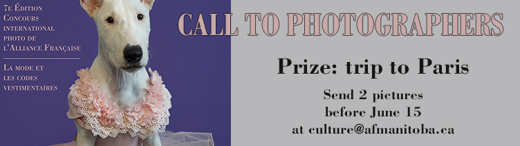 Photo ContestTheme: Fashion and Dress Codes Participez au concours photo 2017 de l'Alliance Française et courez la chance de gagner une adhésion d'un an à l'Alliance Française du Manitoba et même un voyage à Paris! Pour cela, envoyez deux photographies sur le thème "La mode et les codes vestimentaires" avant le 15 juin 2017 à culture@afmanitoba.ca. Visitez notre site internet pour les détails de participation et la fiche d'inscription! Participate in the 2017 Alliance Française photo contest and get chance to win an Alliance Française du Manitoba annual membership and even a trip to Paris! Send two pictures on the theme "Fashion and Dress Codes" before June 15, 2017 to culture@afmanitoba.ca. Check our website to find out all the details and download the registration form! |