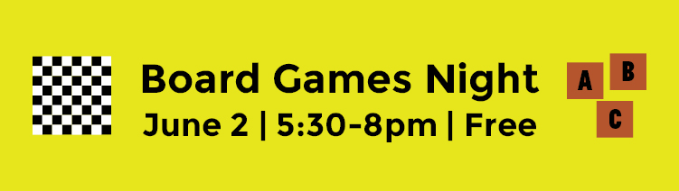 Board Games Night... in French!June 2 | 5:30 - 8:00pm | Free Et voici de nouveau notre soirée jeux de société en français! Venez profiter de cette soirée avec des amis et des jeux passionnants. Il y en aura pour tous les gouts et tous les niveaux de français! N’hésitez pas à nous suggérer des jeux ou à apporter les vôtres! Here, once again, is our Board Games Night in French! Come enjoy the evening with friends and fun games; there will be something for every taste and all French skills levels! Don’t hesitate to suggest games or even bring your own! |