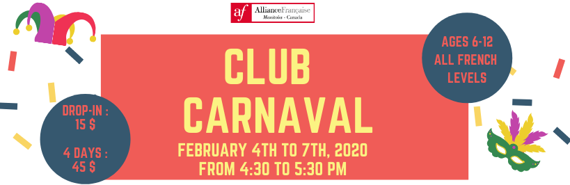 Le mois prochain, c'est le Carnaval ! Pour l’occasion, l’Alliance Française a prévu pour vos enfants une série d’ateliers après l’école la