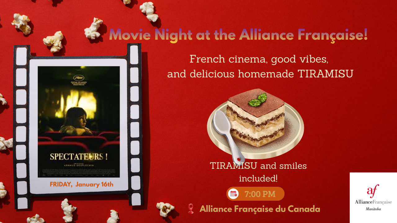 Movie &Tiramisu ? C’est la projection d’un film en version française sous-titrée en anglais, accompagnée de délicieux Tiramisu ! C’est gratuit et nous offrons les Tiramisu !