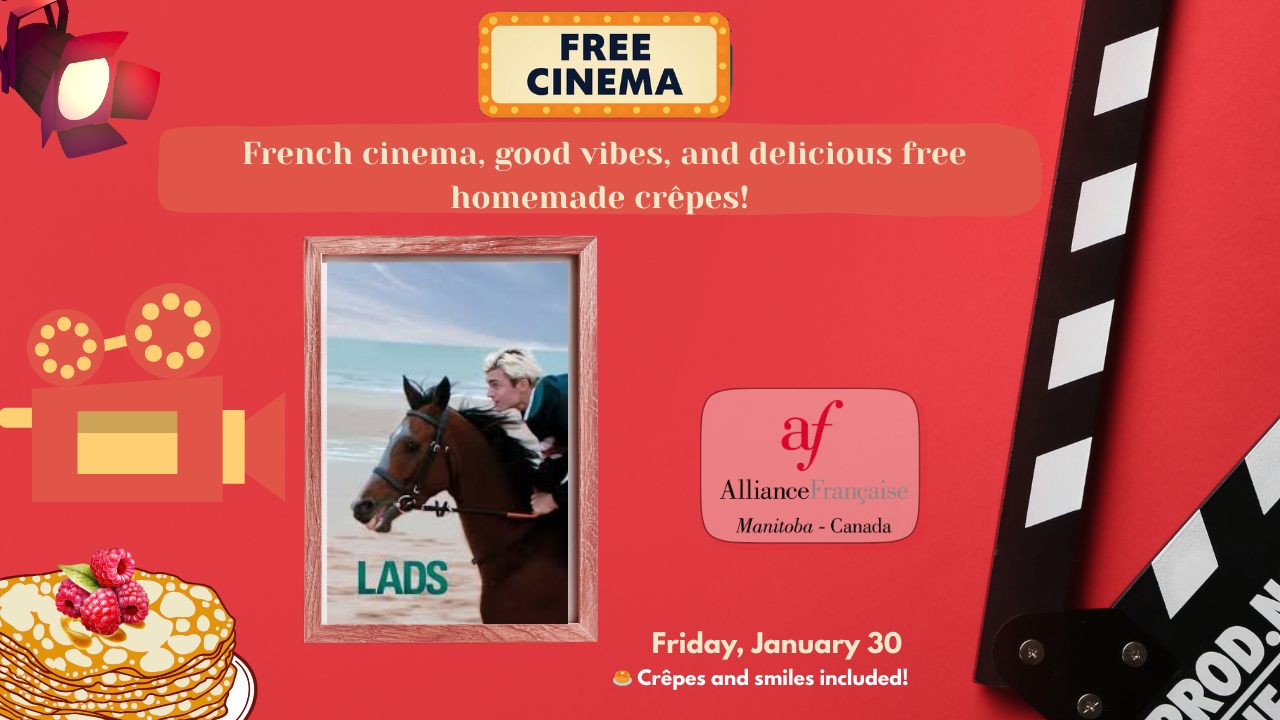 A French-speaking movie with English subtitles, enjoyed with delicious crêpes! It's free and we provide crêpes!