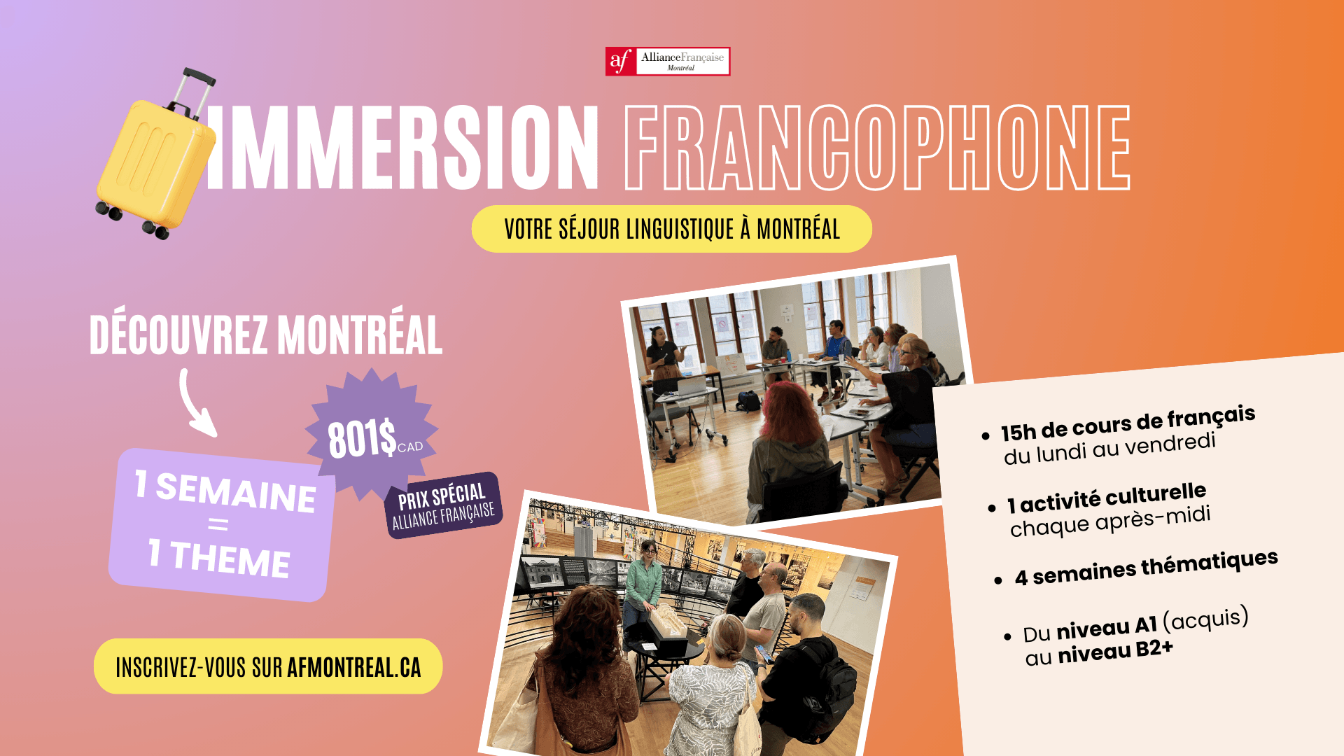 - Live an unforgettable experience at the Alliance Française de Montréal.