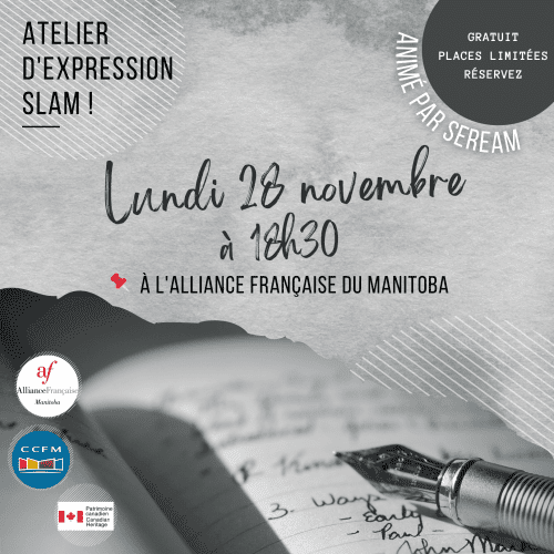 This first edition of the 18/19 Spoken Word will take place at the Alliance française du Manitoba, on 934 Corydon.