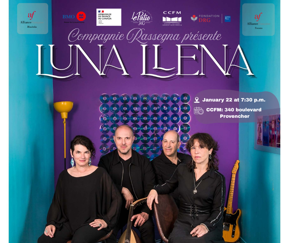 As part of its 2026 Canadian tour, the Luna Llena concert by Compagnie Rassegna, organized by the network of Alliances françaises in Canada, , invites audiences on a musical journey through the heart of Mediterranean folk songs — Arabic, Occitan, Kabyle, Spanish, and Greek. Led by Bruno Allary, this exceptional quartet will perform in several Canadian cities, including Toronto, Vancouver, Montréal, Edmonton, Moncton, and Ottawa. The group will also make a highly anticipated stop in Winnipeg on January 22, 2026, at the CCFM. A unique musical event not to be missed!