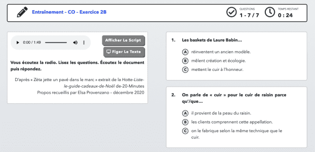 The DELF B1 or DELF B2 are composed of three collective sections (oral comprehension, written comprehension, and written expression) and one individual one (oral expression). To help you prepare properly for the exam, you will have access to training exercises for all the different sections on our platform!