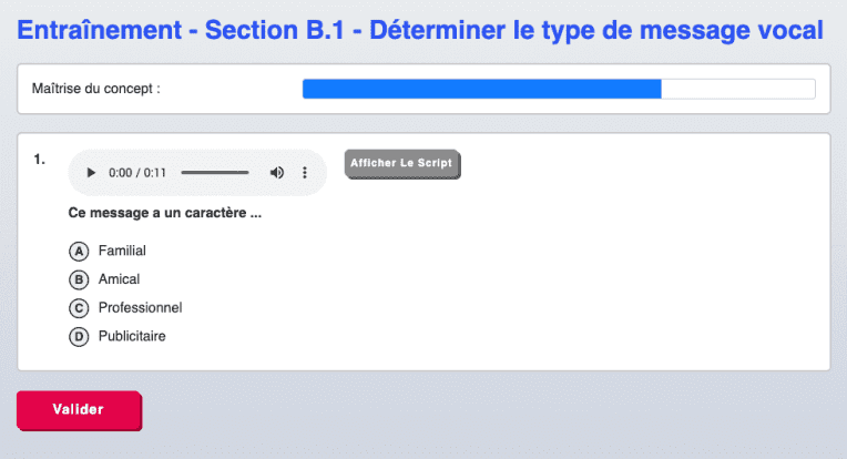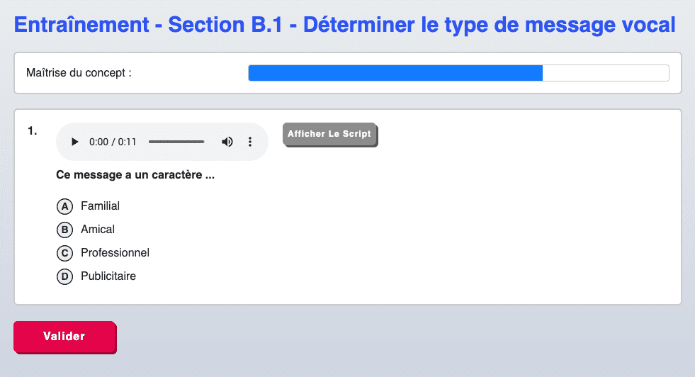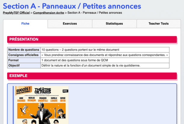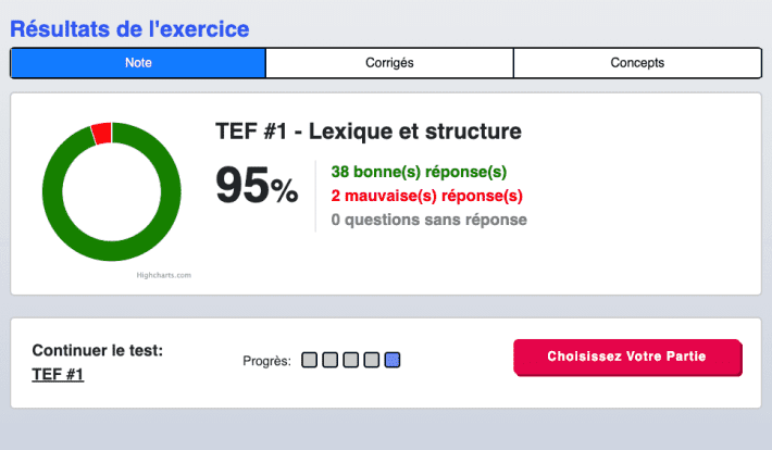 More than 1500 exercises included in our TEF or TCF training with detailed explanations in both French and English.