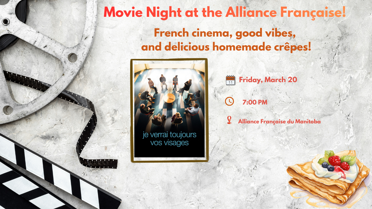 A French-speaking movie with English subtitles, enjoyed with delicious crêpes! It's free and we provide crêpes!