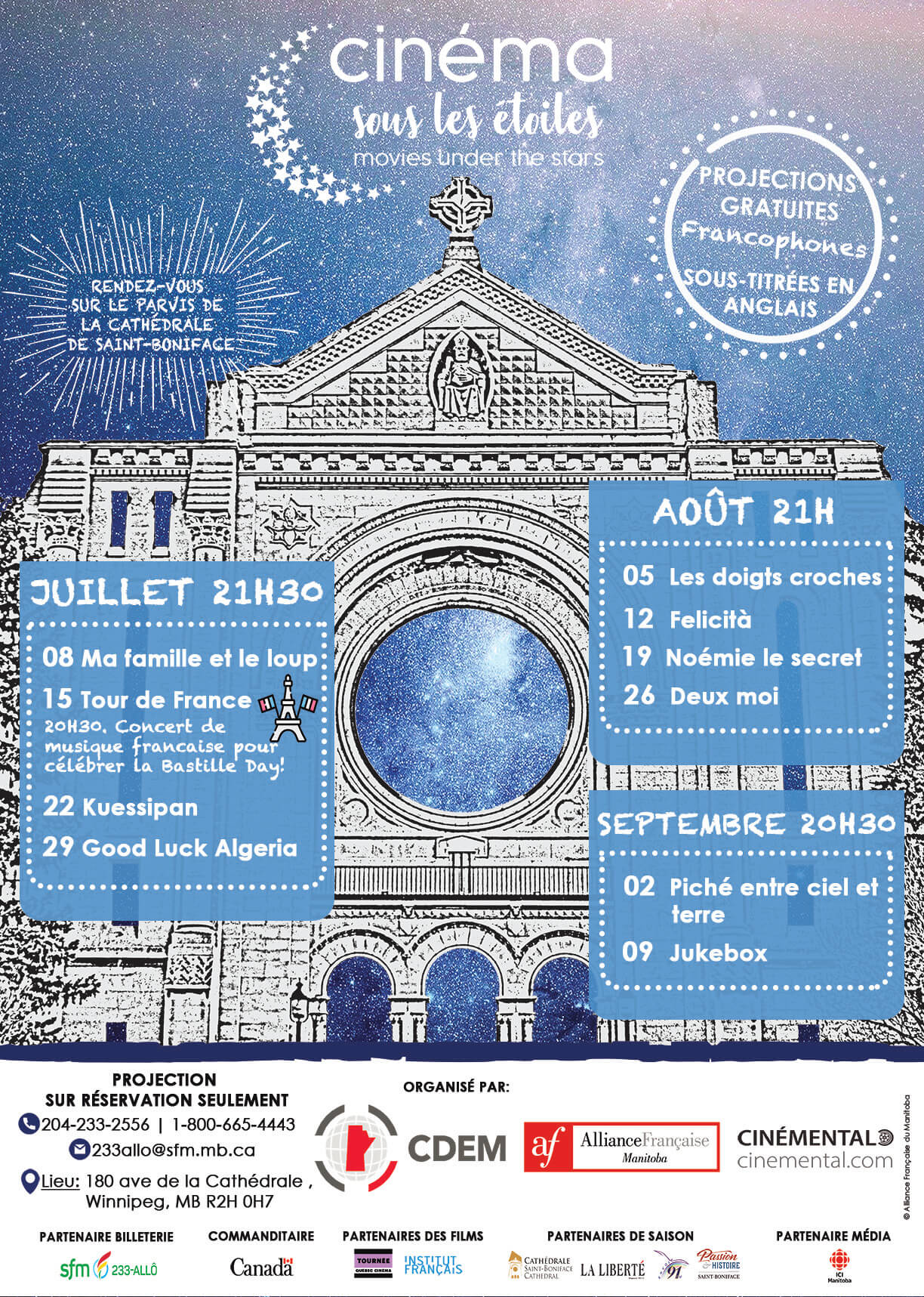 L’Alliance française du Manitoba, le CDEM et CINÉMENTAL ont le plaisir de vous annoncer le lancement officiel de Cinéma sous les étoiles édition 2021!