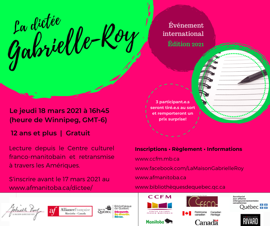 Jeudi 18 mars – La Dictée Gabrielle-Roy